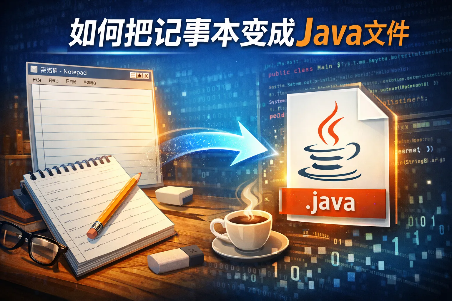 如何把记事本变成java文件
