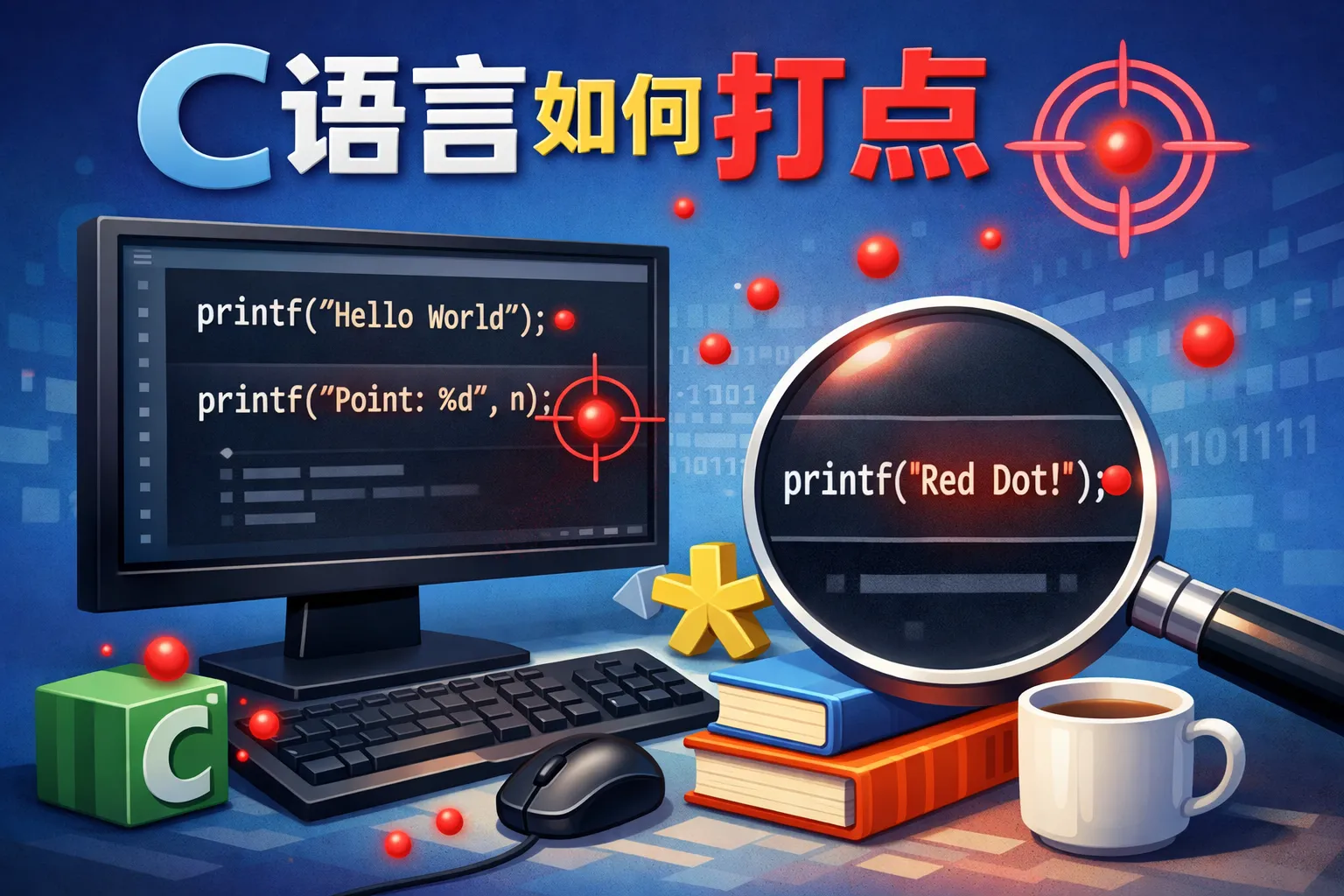 c语言如何打红点