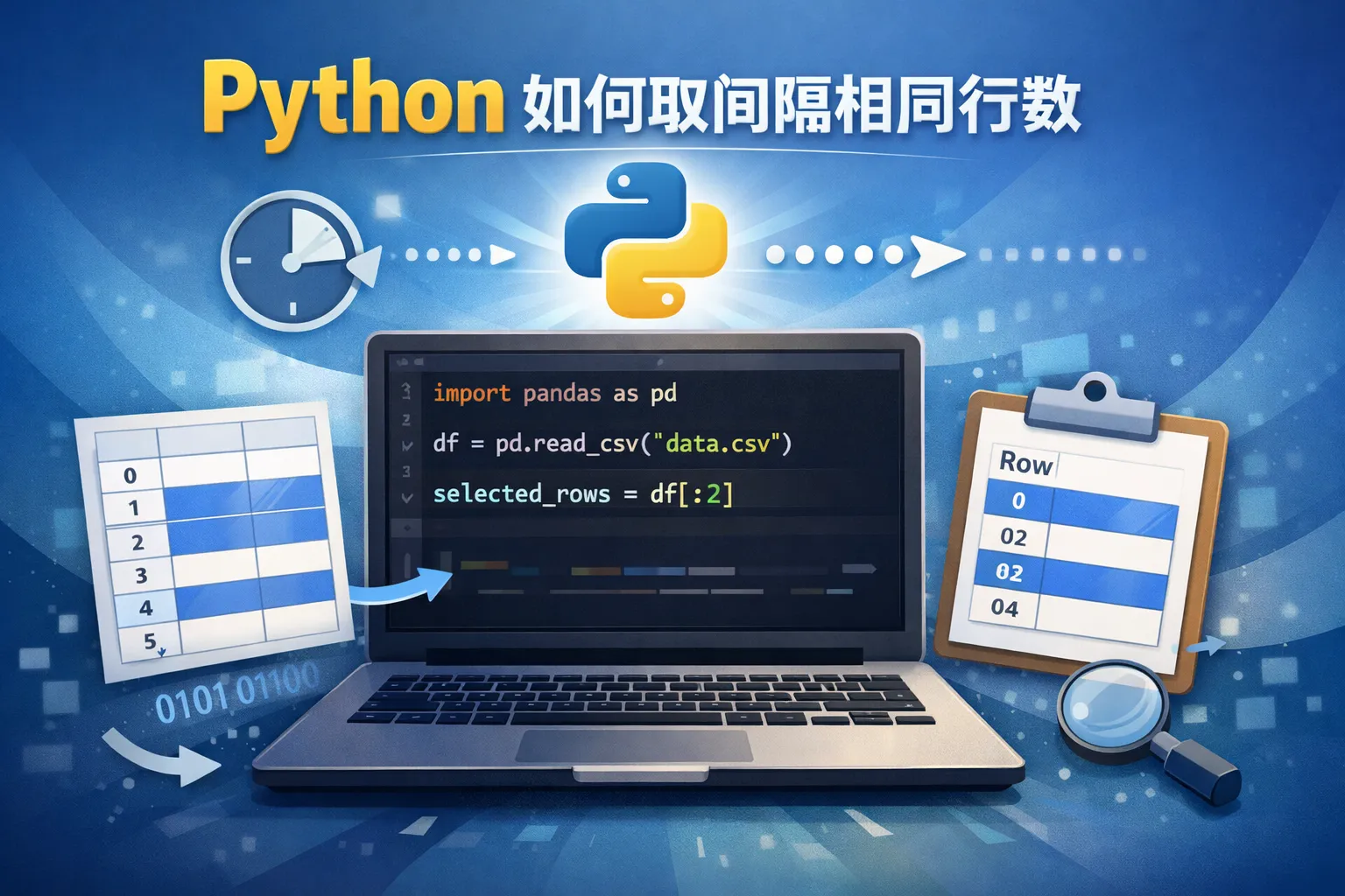 当处理大型文本文件或数据表时,如何用Python高效地选取固定间隔的行进行分析?