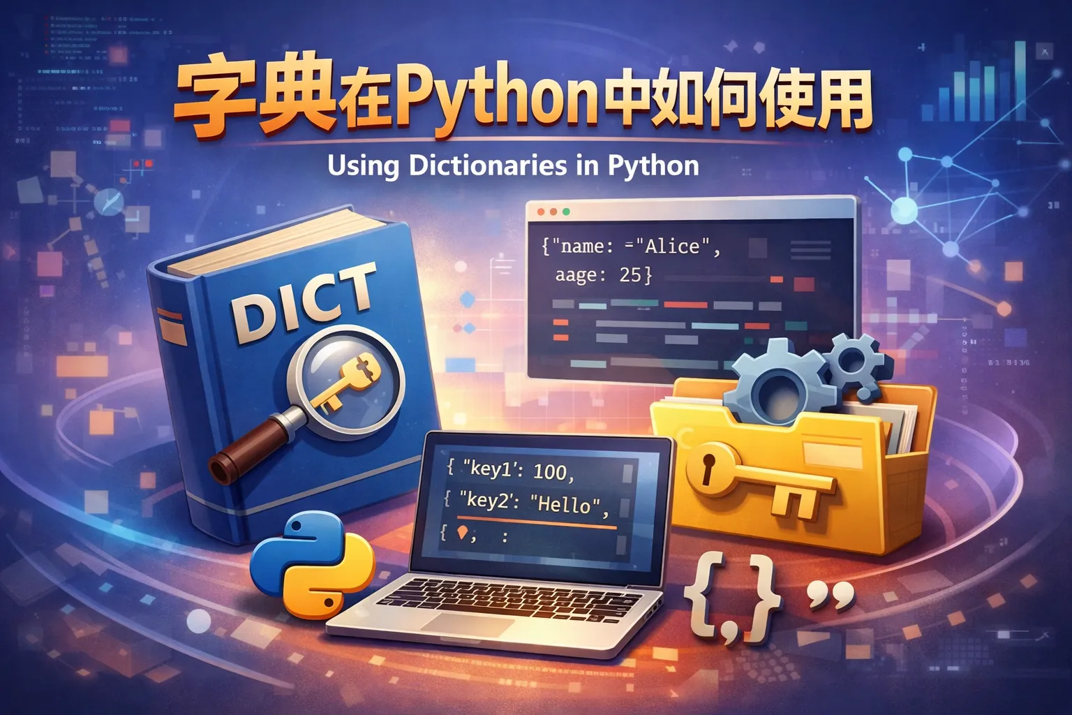Python 中的字典是一种键值对(key-value)数据结构,能够存储任意类型的可哈希对象作为键,对应的值可以是任意类型。字典使用大括号 {} 来定义,键和值之间用冒号 : 分隔,不同的项之间用逗号 , 分隔。