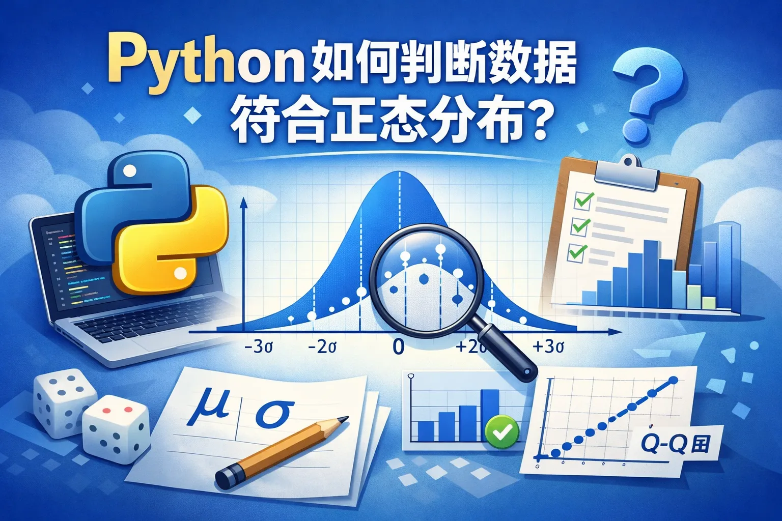 Python可以利用Matplotlib和Seaborn绘制直方图、箱线图、Q-Q图等。尤其是Q-Q图(Quantile-Quantile Plot)用来比较数据分布与正态分布的差异,如果点大致分布在对角线上,说明数据接近正态分布。