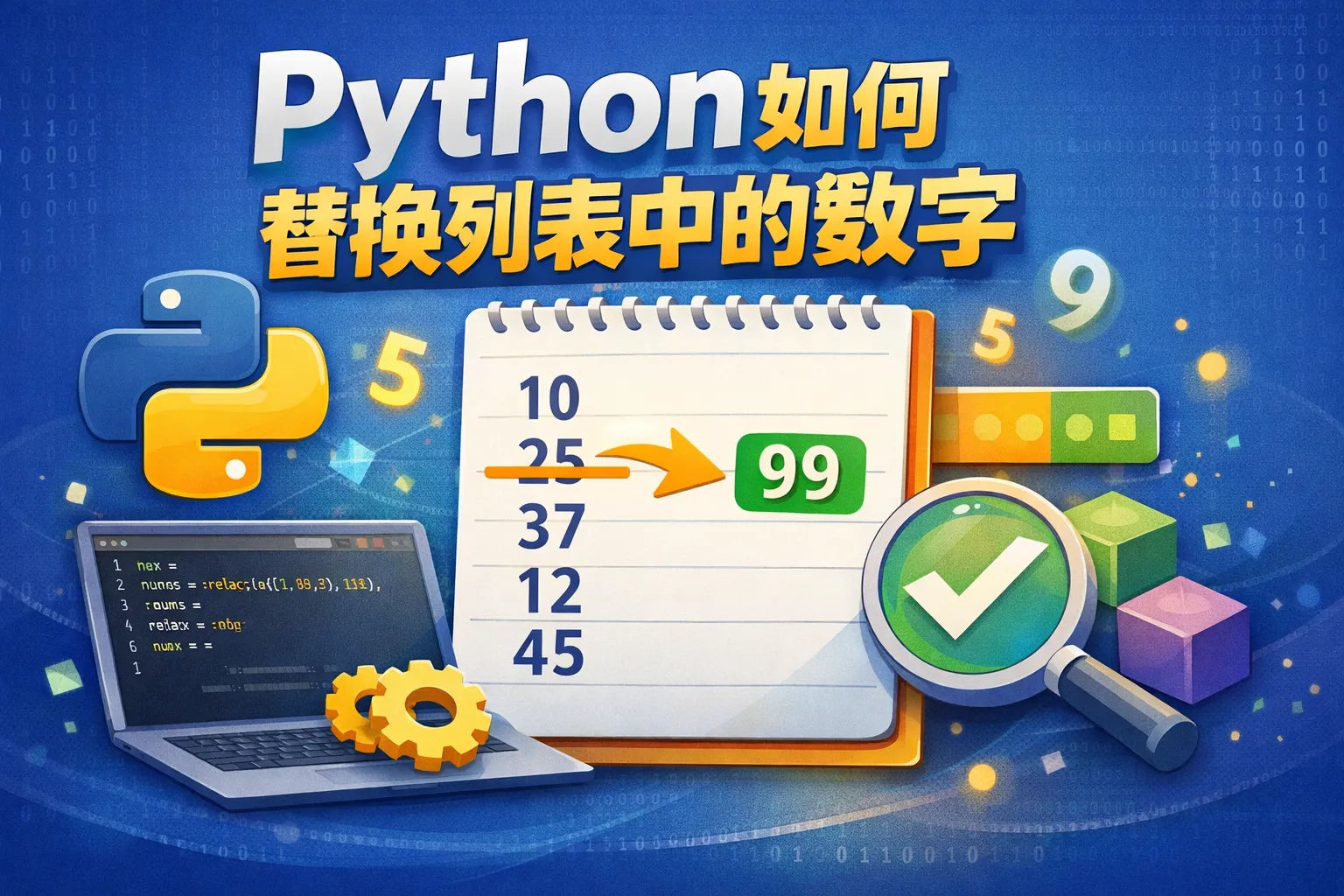 可以通过遍历列表,找到目标数字并进行替换。例如使用for循环或列表推导式,将满足条件的数字替换为新的数字。示例代码: