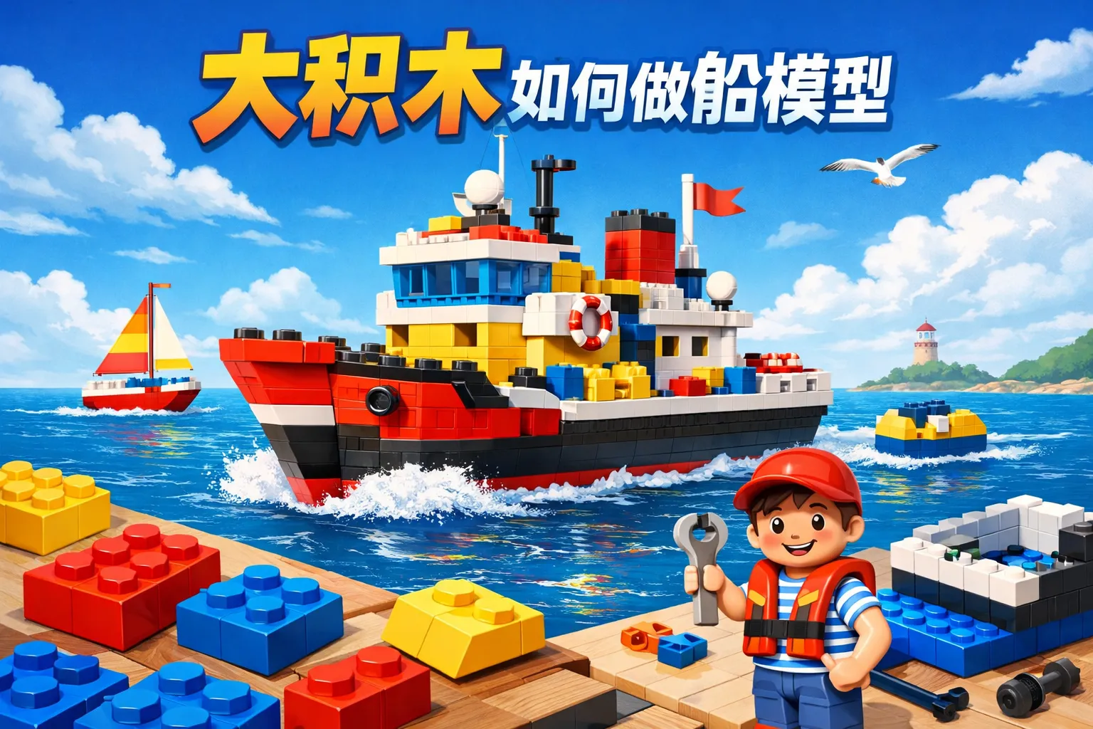 使用大积木制作船模型需要哪些基本材料?