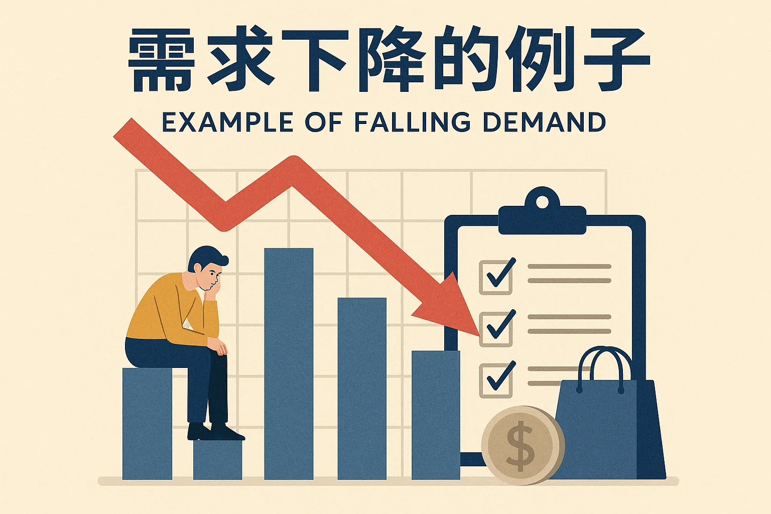 我需要用图片来说明需求下降的概念,应该选择哪些元素或图表来有效表达这一点?