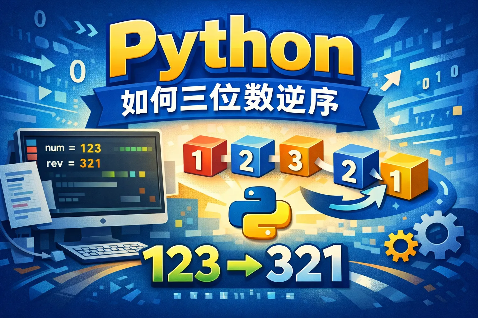可以将三位数数字转换为字符串,使用切片操作[::-1]实现逆序,再转换回整数。例如:num = 123; reversed_num = int(str(num)[::-1])