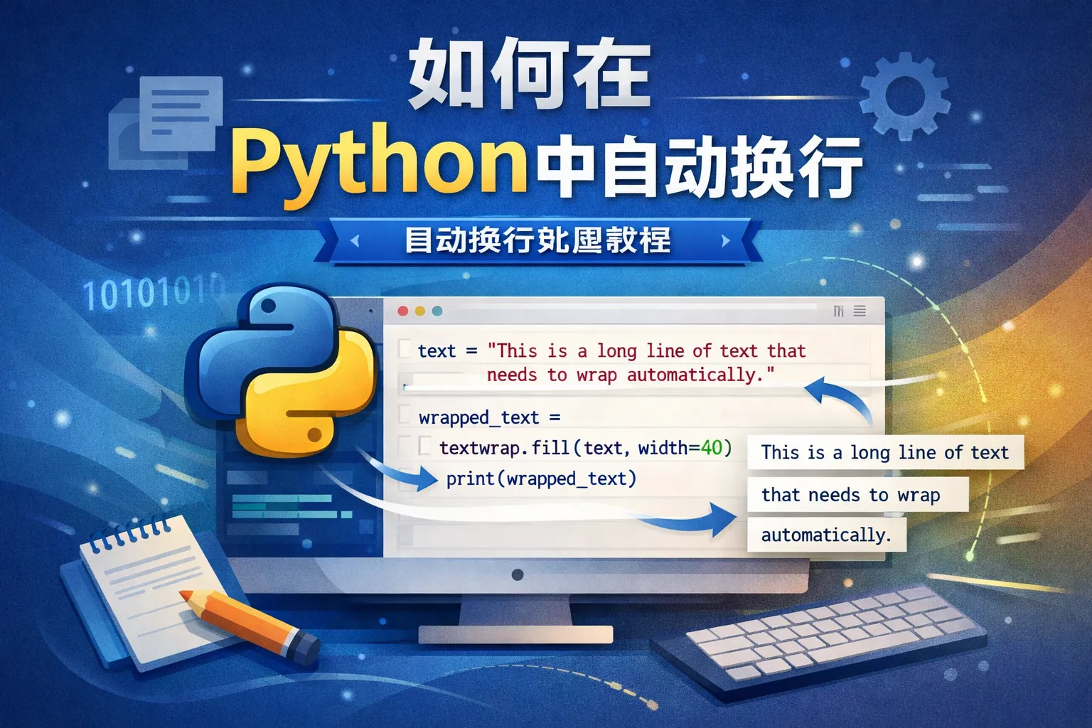Python的textwrap模块提供了TextWrapper类和wrap函数,可以轻松实现文本的自动换行。例如,使用textwrap.fill()函数可以将长字符串按照指定宽度自动拆分成多行,便于显示和打印。