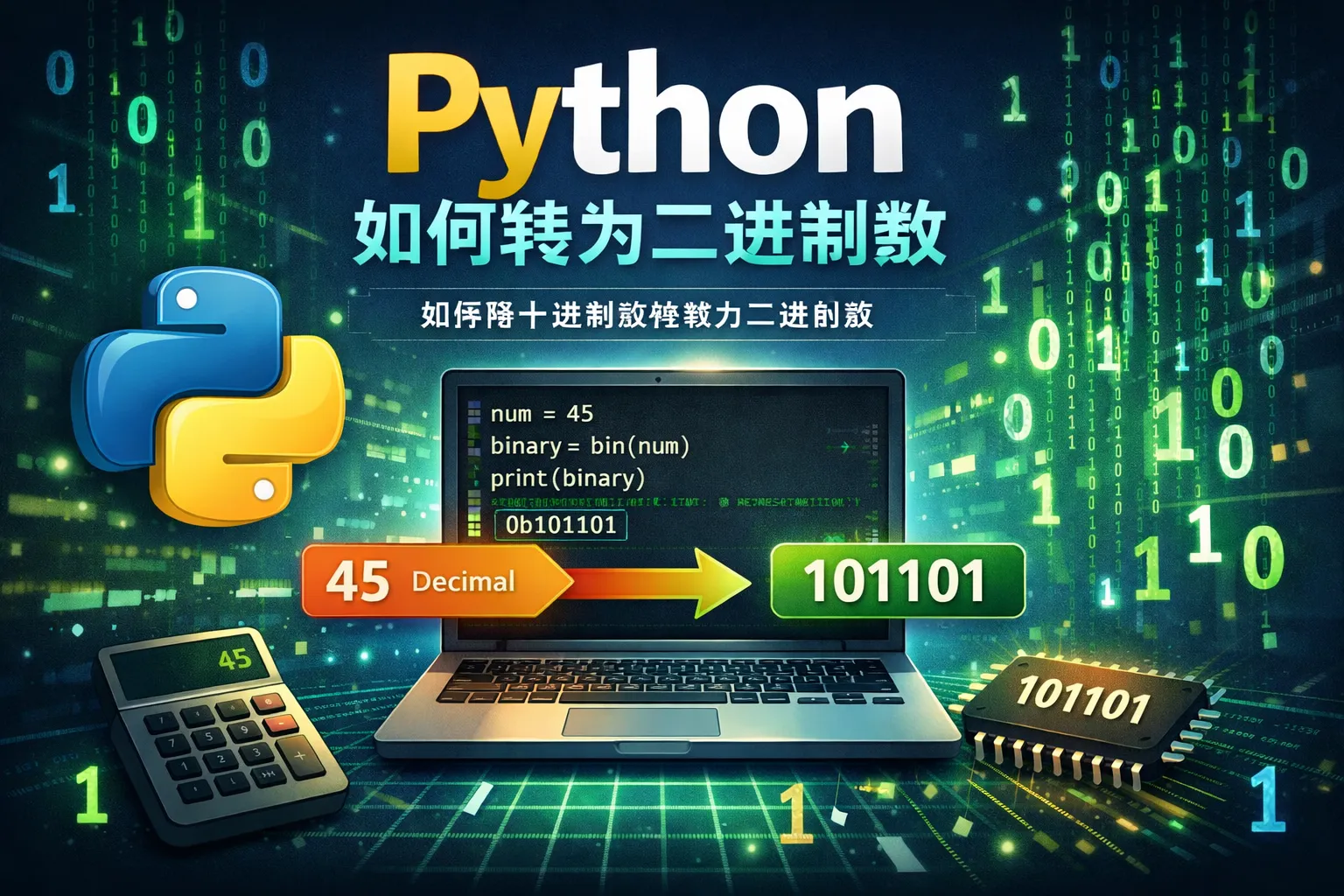 Python内置的bin()函数可以将一个整数转换为二进制字符串,输出格式以'0b'开头。例如,bin(10)会返回'0b1010'。如果需要去掉前缀'0b',可以使用字符串切片bin(10)[2:]来获得纯二进制数字字符串。