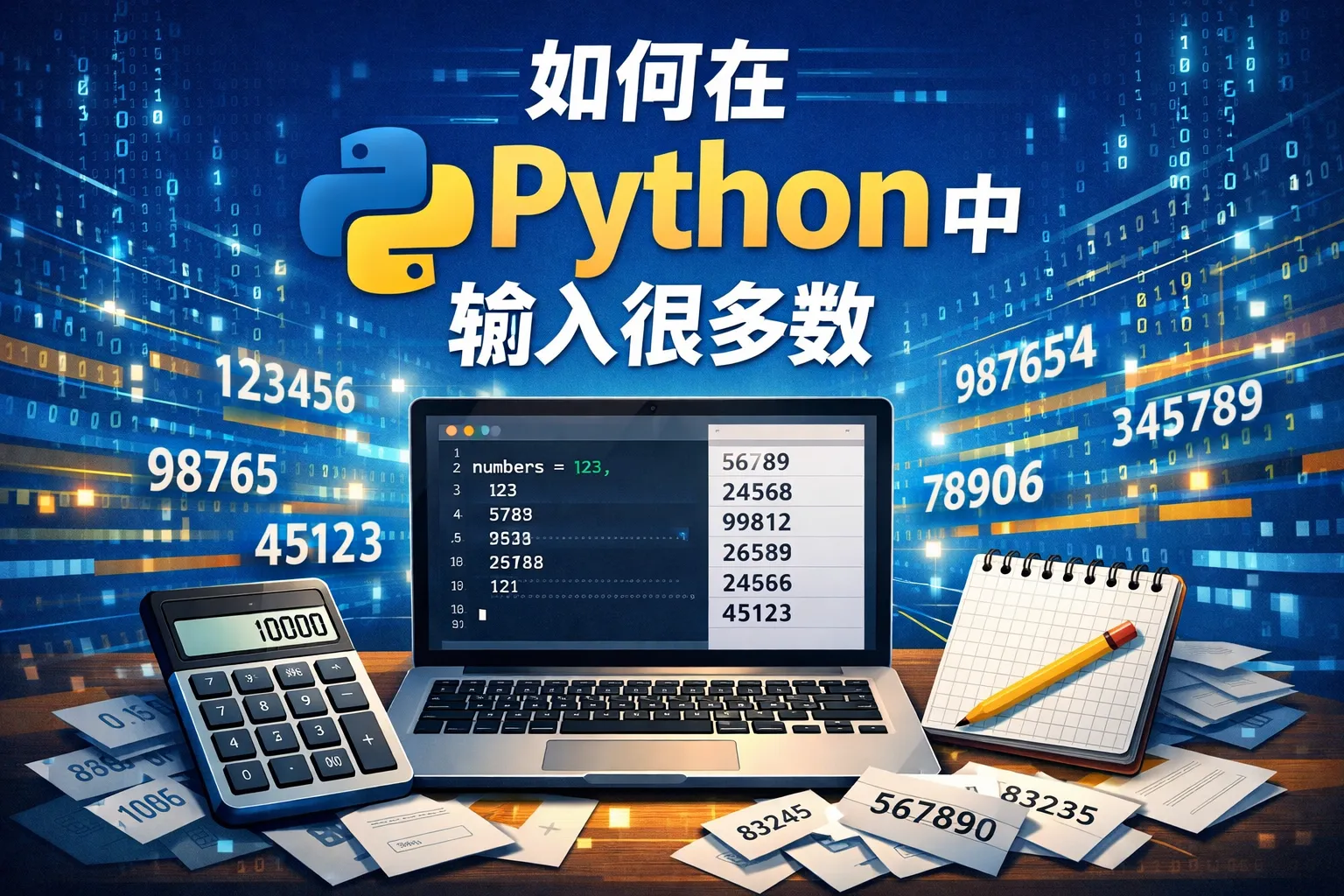 可以先将大量数字写入文本文件(数字之间用空格、逗号或换行分隔),然后在Python中使用open()函数读取文件内容,利用split()或正则表达式提取数字,最后转换为所需类型存入列表。例如:with open('numbers.txt') as f: