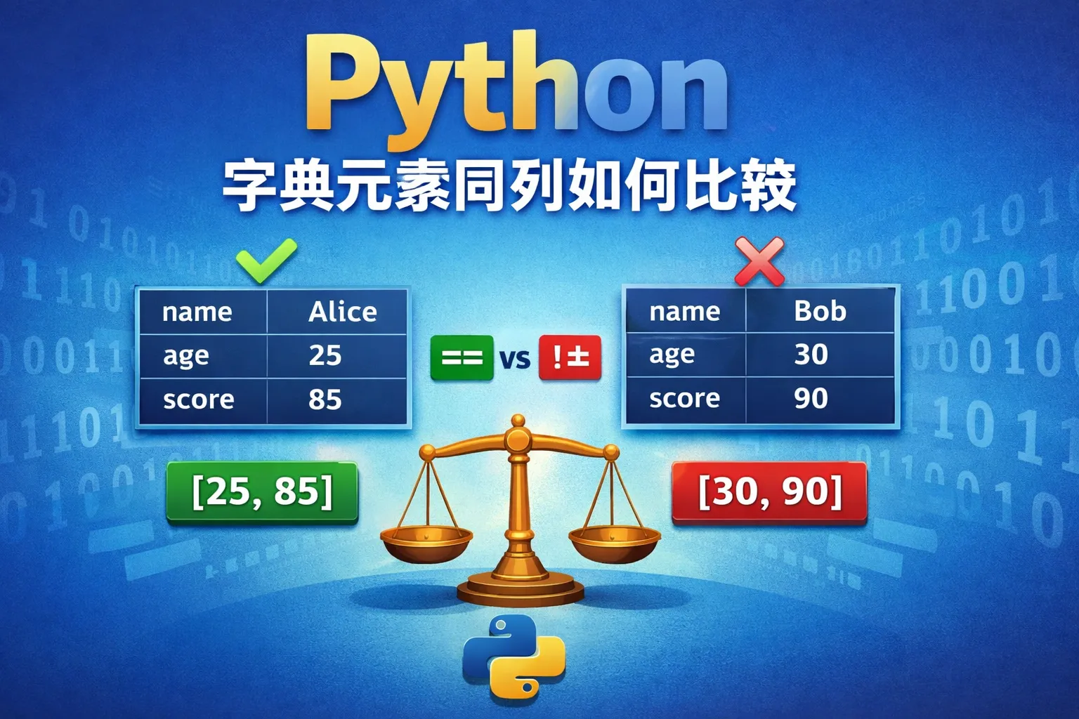 在Python中如何判断两个字典对应列的元素是否一致?