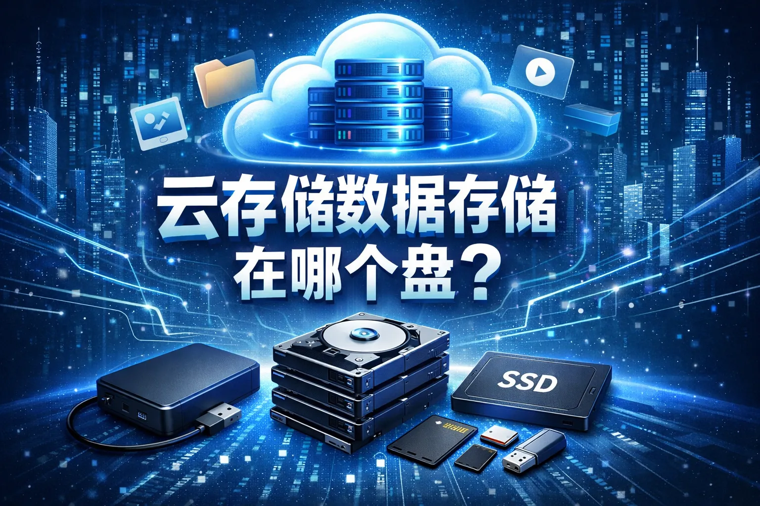 云存储的数据通常存放在数据中心内的多个服务器硬盘上,这些硬盘可以是传统的机械硬盘(HDD)或固态硬盘(SSD)。数据分布于不同的物理设备上以保证安全和高可用性。