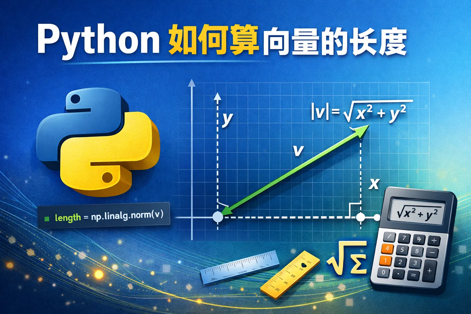 在Python中,可以利用NumPy库来方便地计算向量的长度。向量的长度通常指的是它的欧几里得范数(Euclidean norm),即所有分量平方和的平方根。具体做法是,先导入NumPy,然后用numpy.linalg.norm函数计算。例如,如果向量是一个列表或数组,调用numpy.linalg.norm(vector)即可获得其长度。