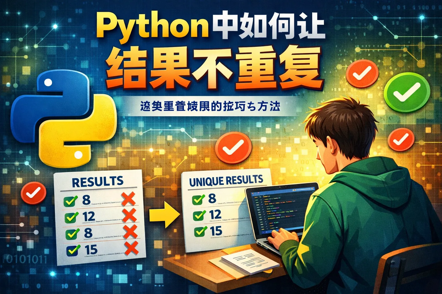 Python的random模块提供了sample函数,可以从指定范围中随机抽取指定数量的元素,确保不重复。举例来说,random.sample(range(1, 100), 10)会生成10个1到99之间不重复的随机数,非常适合避免重复。