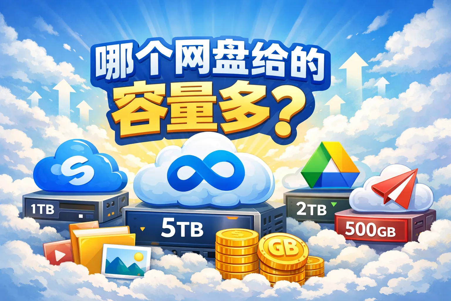 我想知道哪些网盘在免费版本中给出的存储容量最多,方便我存放大量文件。