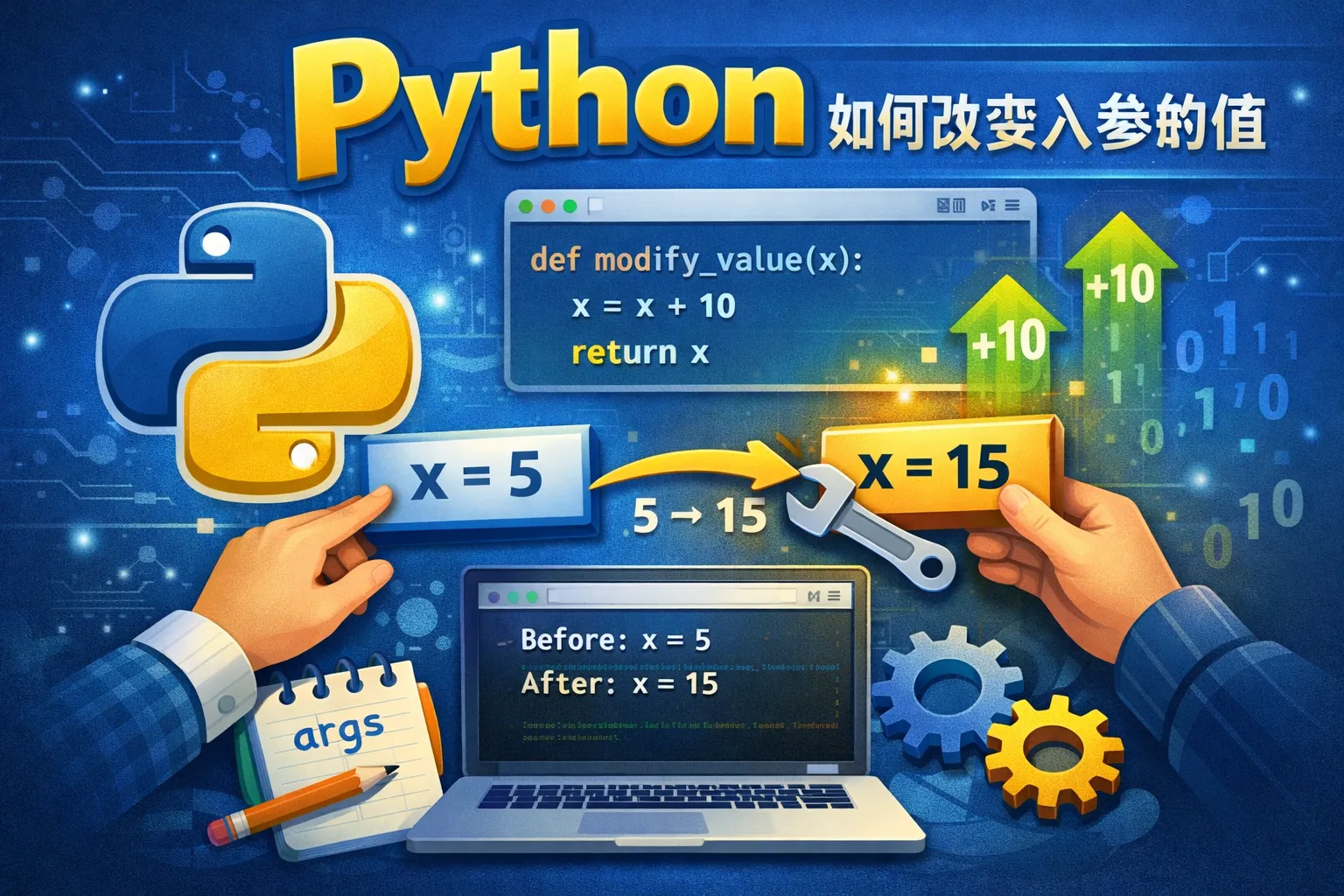 因为整数和字符串是不可变类型,函数内修改不会影响外部变量。可以通过函数返回修改后的值,然后重新赋值给外部变量,或者将参数封装在一个可变容器对象(如字典或自定义对象)内,通过修改该容器的属性来间接改变值。