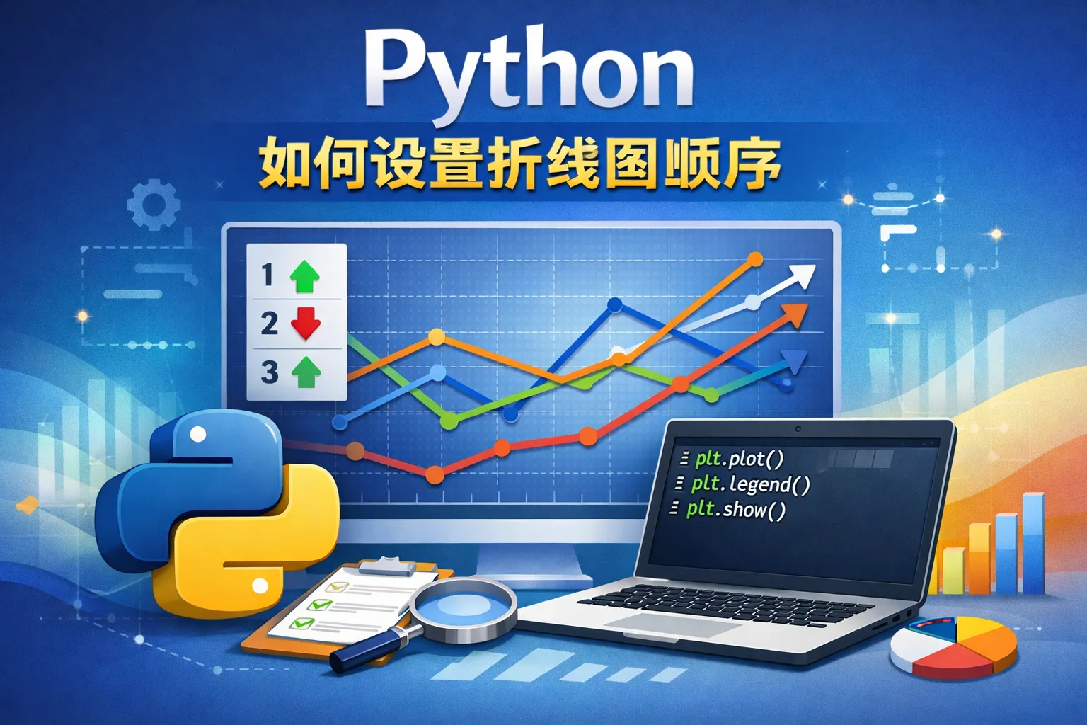 Python的绘图库一般按照代码中绘制的顺序依次显示线条,后绘制的线条会覆盖之前的。想要控制哪条线先画,可以调整绘图代码中绘制各条折线的顺序。此外,使用 zorder 参数可以控制图层优先级,数值越大图层越高,线条也会覆盖其他线条。合理利用绘图顺序和 zorder 能准确控制多条折线的显示层级。