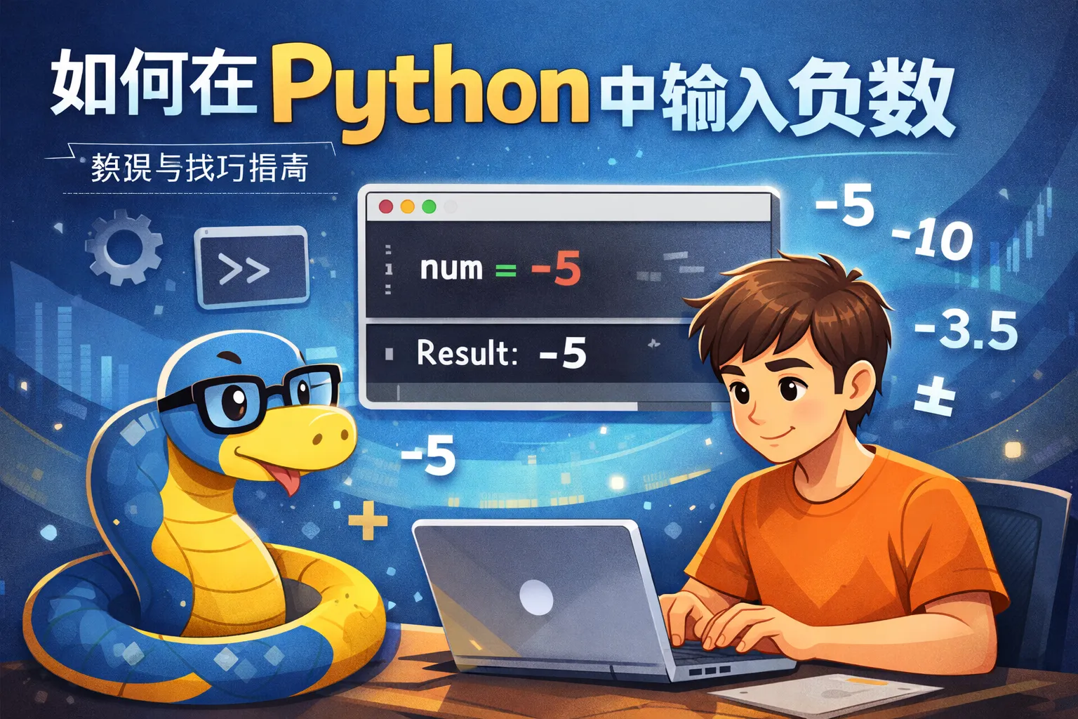 使用input()函数读取用户输入后,可以通过内置的int()或float()函数将字符串转换为对应的负数。例如,num = int(input('请输入一个数字:')),用户输入-5时,num将正确保存为-5。