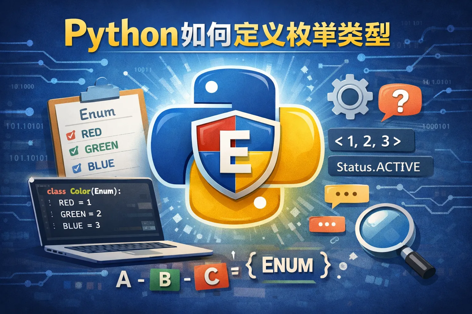 Python里通过导入标准库中的enum模块,可以很方便地定义枚举类型。你需要继承enum.Enum类,然后将枚举成员作为类属性赋值,例如: