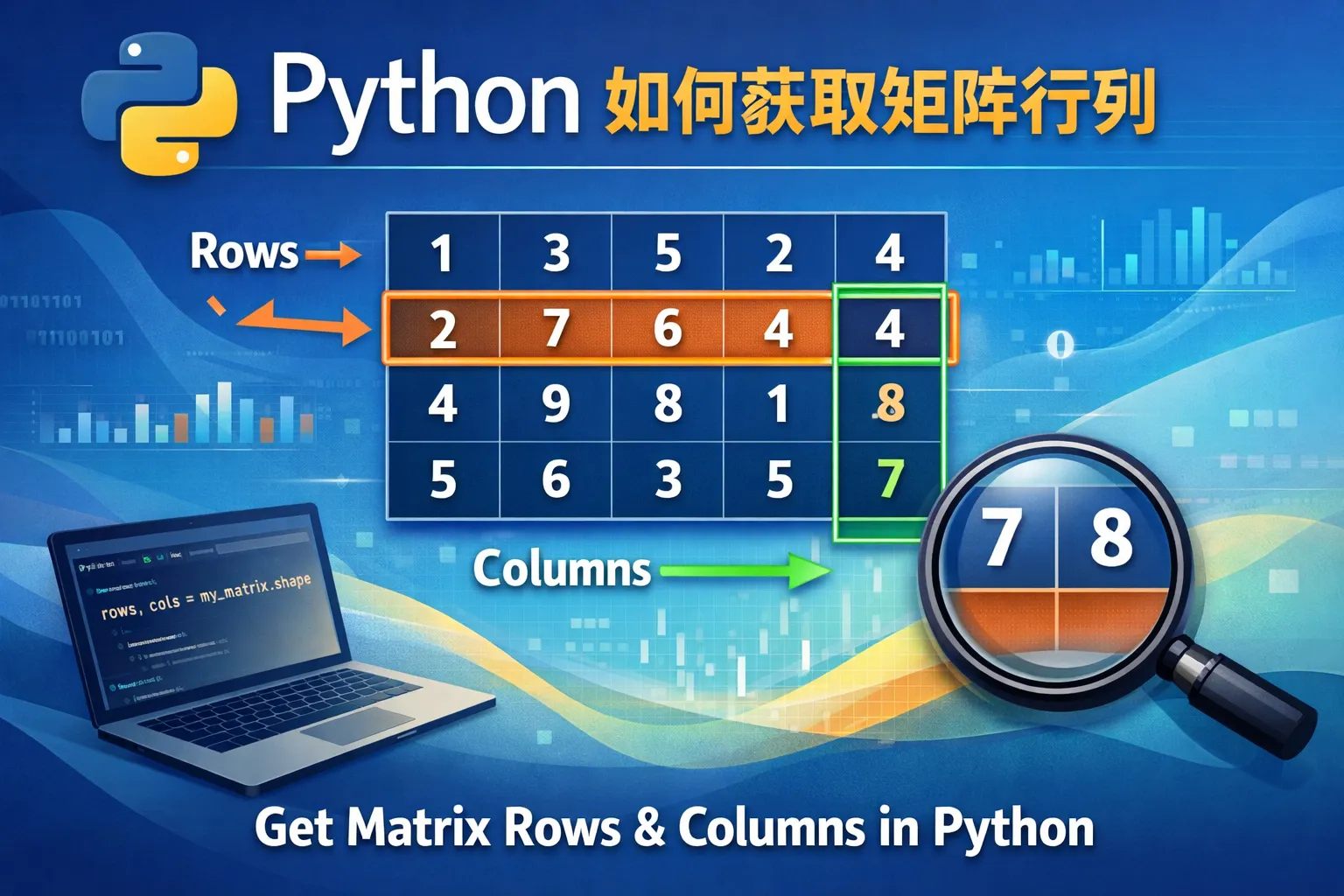 当矩阵是NumPy数组时,可以使用行数和列数的拆包赋值语句:rows, cols = matrix.shape。这样,两者的值会同时被赋给rows和cols变量,方便后续编程操作。