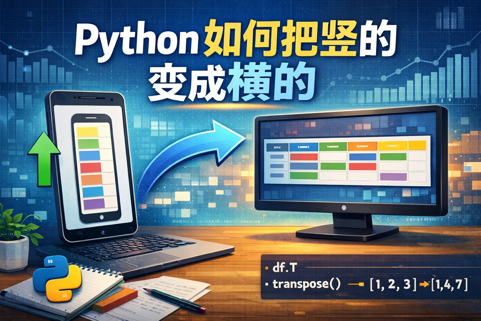 Python中可以利用zip函数结合星号操作符(*)对多个列表进行转置,从而实现竖向数据变为横向。对于一维列表,直接打印即为横向显示,如果是数组或表格形式,可以使用numpy库的transpose方法进行转换。