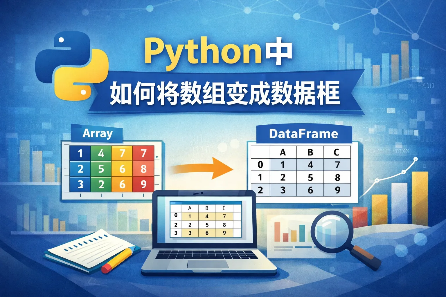 虽然numpy等库可以处理数组数据,但pandas是专门用于数据框操作的库,功能更全面且用法简单。因此,一般推荐直接使用pandas库完成数组到数据框的转换。