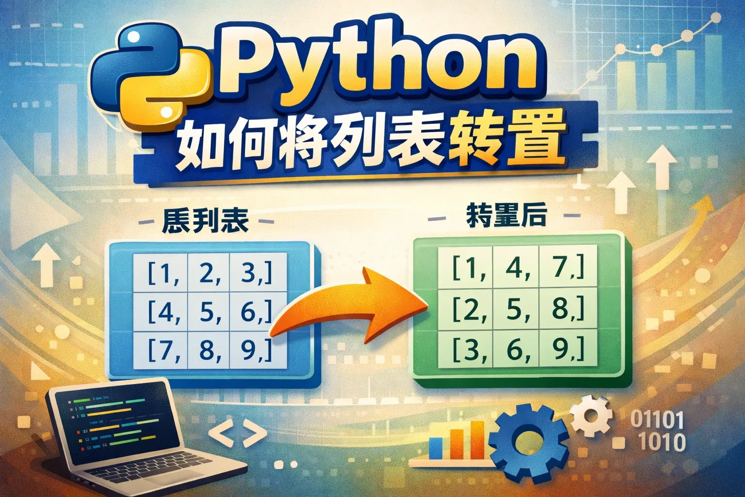 可以通过列表推导式结合索引进行转置操作,例如,以索引为基础构建新的列表结构。另外,若处理的是数值矩阵,NumPy 库的 numpy.array.T 属性提供了高效便捷的转置功能。