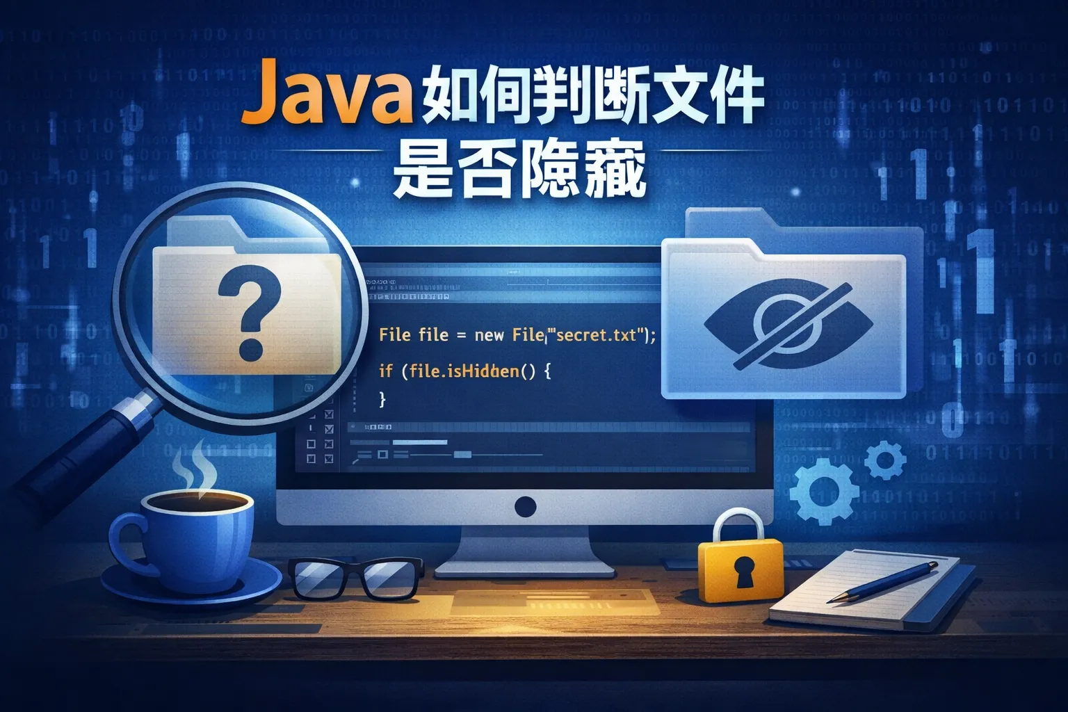 在Java中,可以通过创建File对象来表示目标文件,然后调用isHidden()方法来判断文件是否隐藏。返回true表示文件是隐藏的,返回false表示是普通文件。该方法是Java判断文件隐藏状态的标准手段。