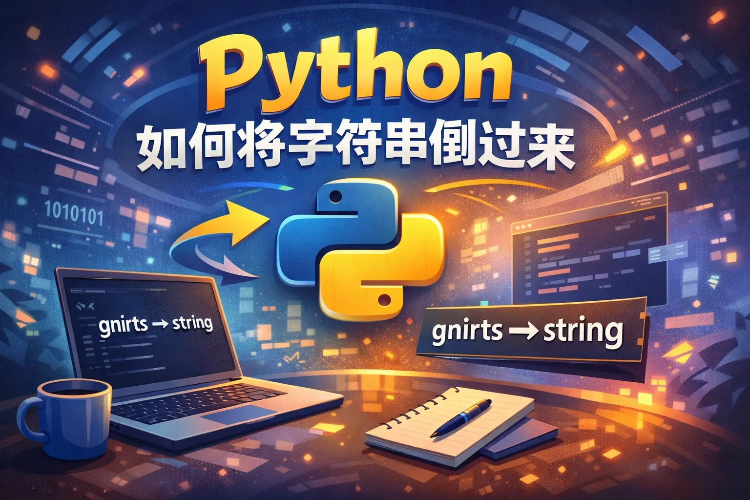 Python提供了reversed()函数,用来返回一个可迭代对象的反向迭代器。可以通过将reversed()的结果传入''.join()方法连接成新的字符串。例如:reversed_string = ''.join(reversed(original_string))。