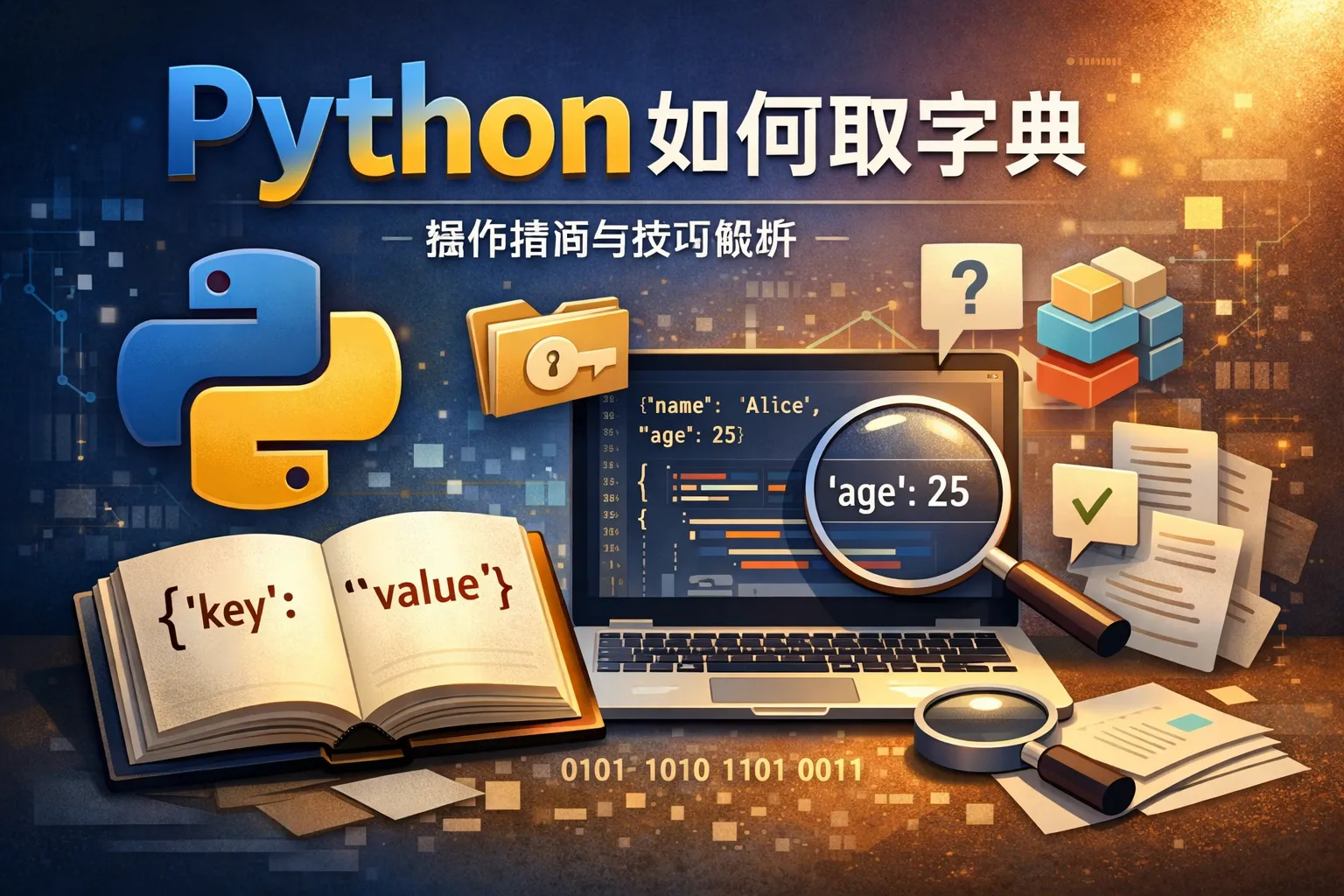 在Python中,字典是一种键值对的数据结构。你可以通过指定键来获取对应的值,例如,如果有字典dict_data,可以使用 dict_data[key] 来访问。比如,dict_data = {'name': 'Alice', 'age': 25},访问年龄可以写作 dict_data['age'],返回值是25。