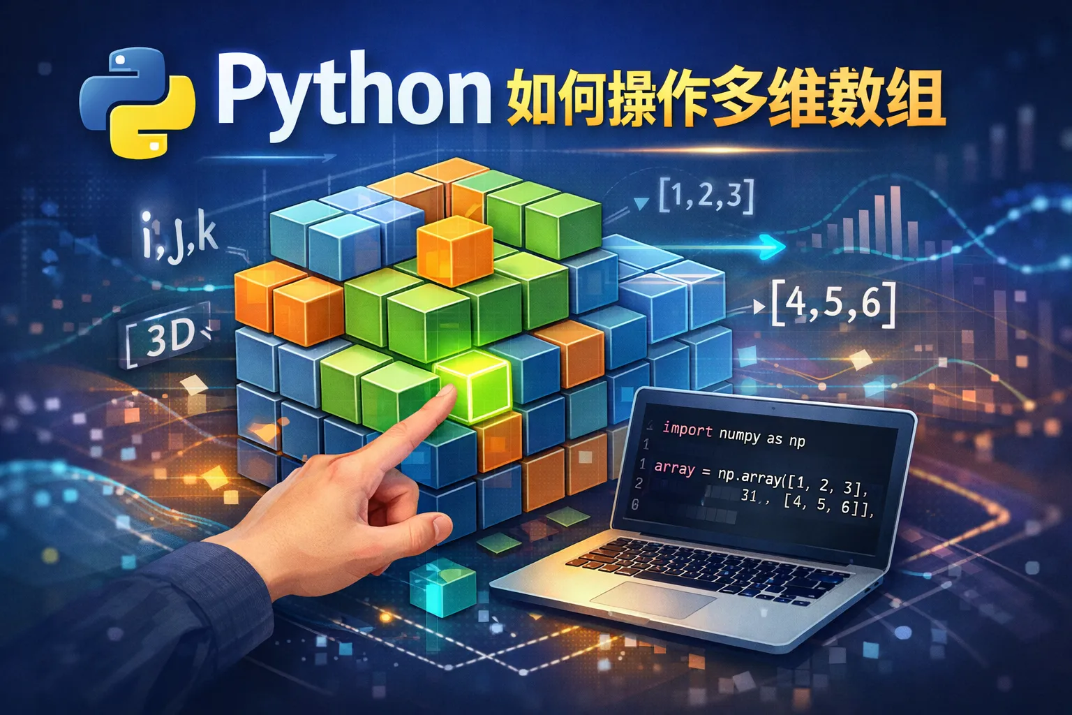 利用NumPy,可以用numpy.array()函数创建多维数组。访问元素时,可以通过索引,使用逗号分隔各维的下标,例如array[0,1]表示第一维的第一个元素和第二维的第二个元素。