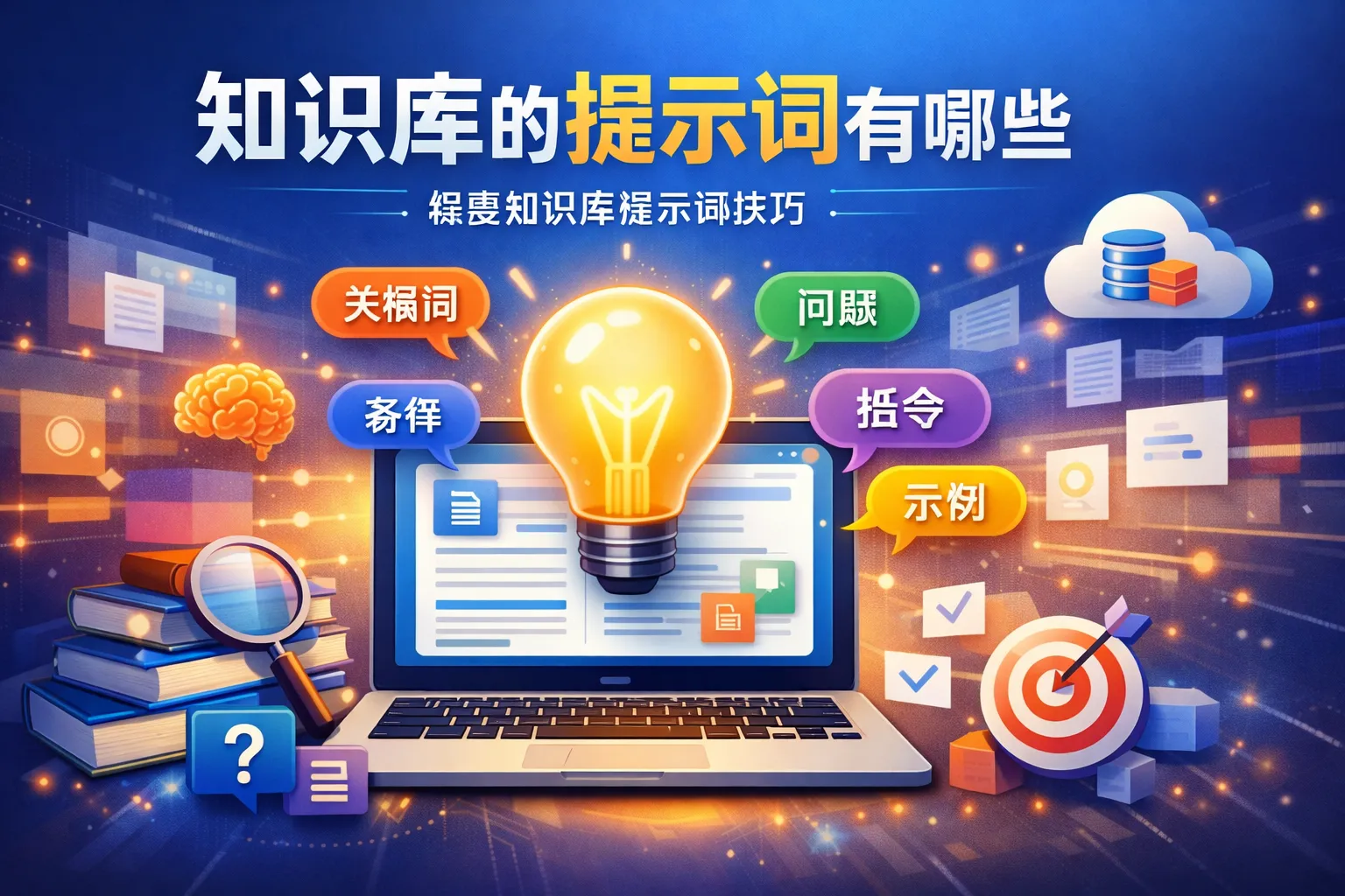 提示词是在知识库查询或交互过程中,用来引导系统理解用户意图的关键词或短语。它们帮助系统更准确地匹配相关内容,提高检索效率和回答的相关性。
