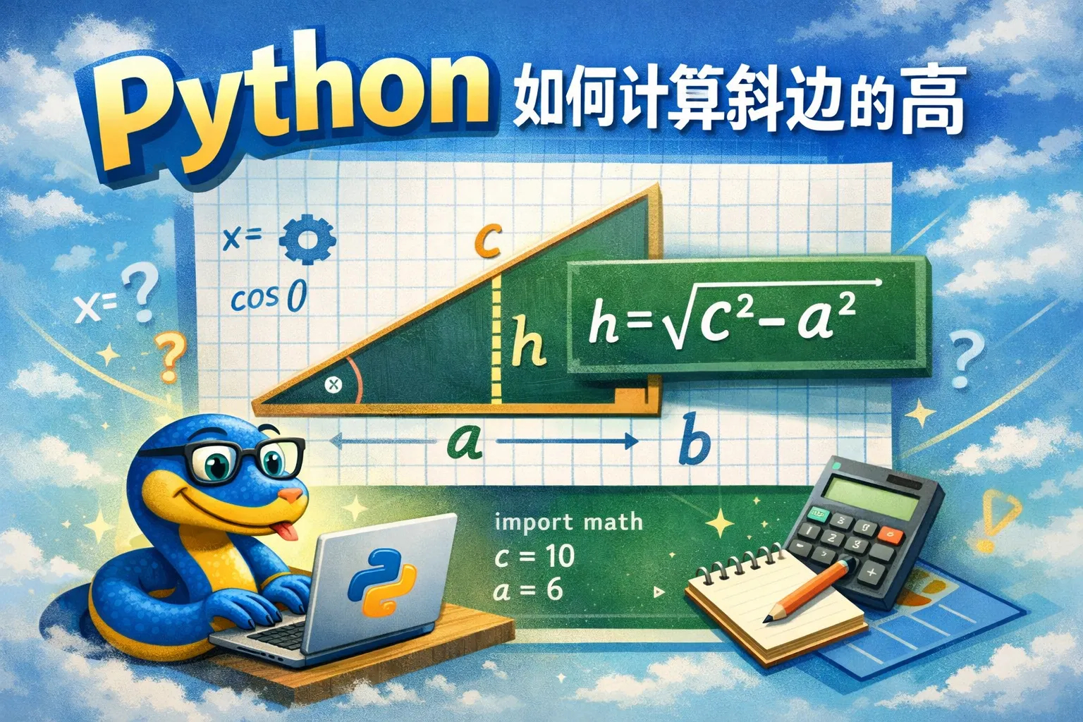在用Python计算斜边的高度之前,我需要理解哪些相关的数学知识?