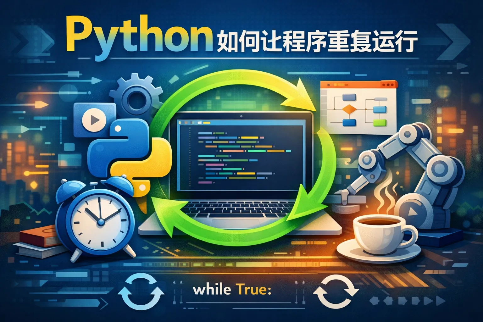 在Python中,可以使用循环语句如for循环和while循环来让代码重复运行。for循环适用于已知次数的重复,而while循环适合根据条件控制重复次数。通过设定合适的循环条件,可以让程序持续执行特定任务。