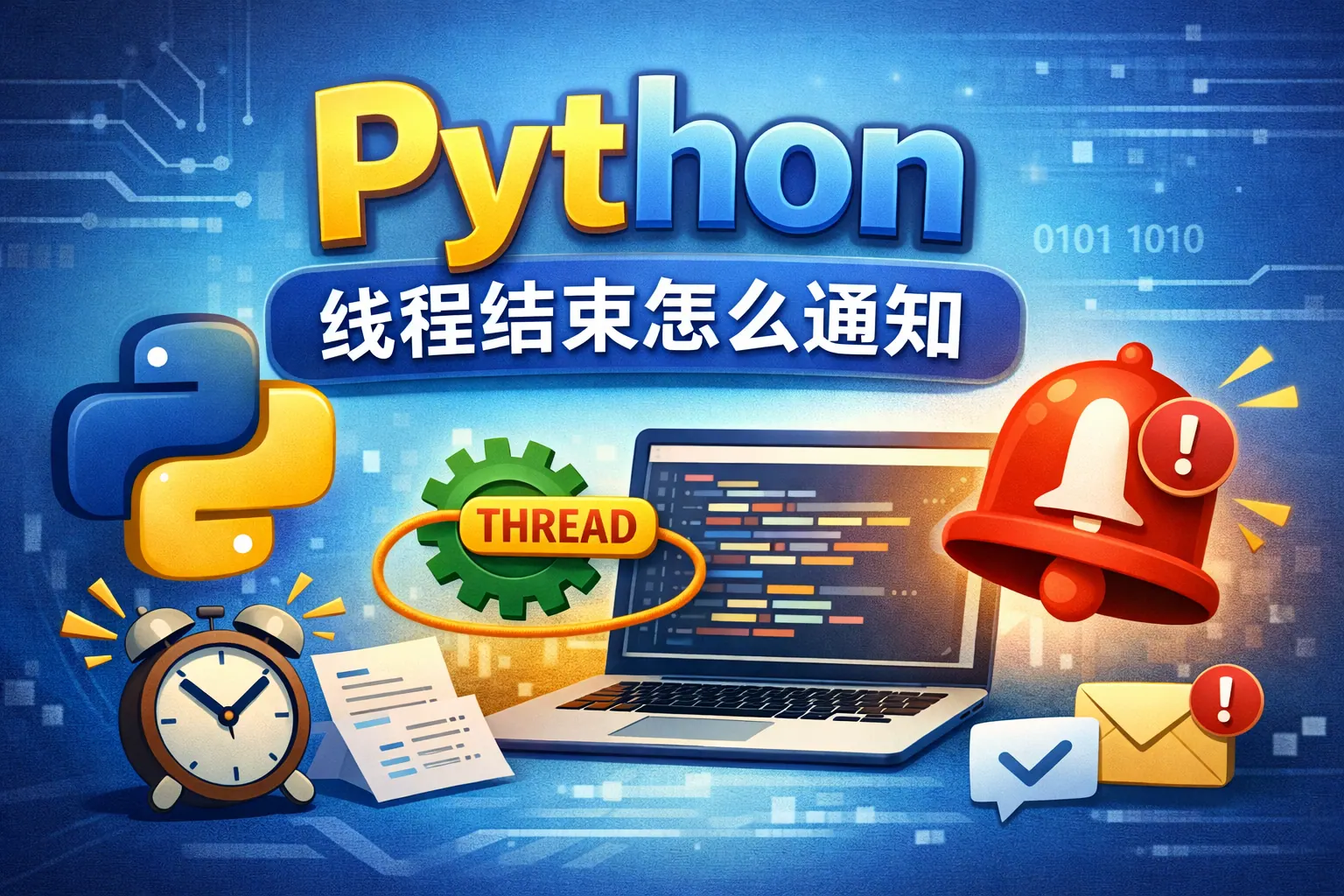 threading模块中的Event类可以作为线程间通信的同步工具。子线程在结束前调用event.set(),通知主线程该事件已经发生。主线程通过event.wait()等待事件,达到被通知线程结束的目的,保证线程间协调和数据安全。