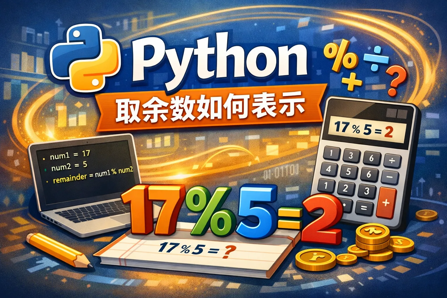 Python使用百分号(%)符号作为取模运算符,可以计算两个数相除后的余数。例如,表达式 7 % 3 会返回 1,这表示7除以3的余数是1。