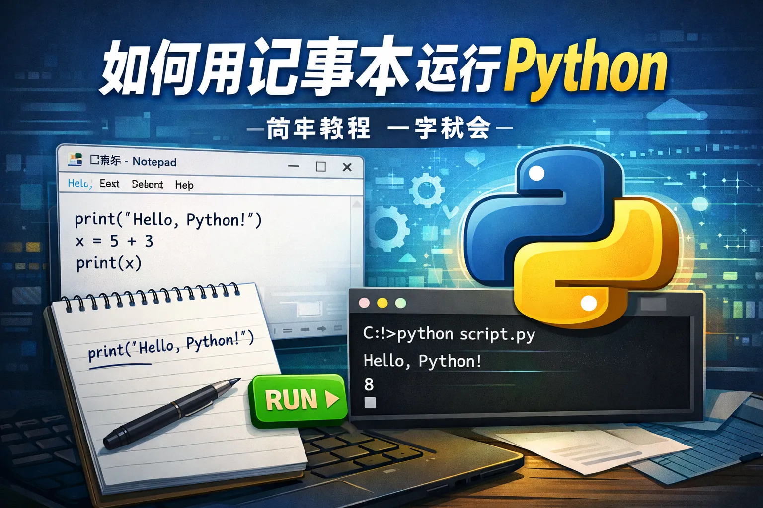 如何用记事本运行python