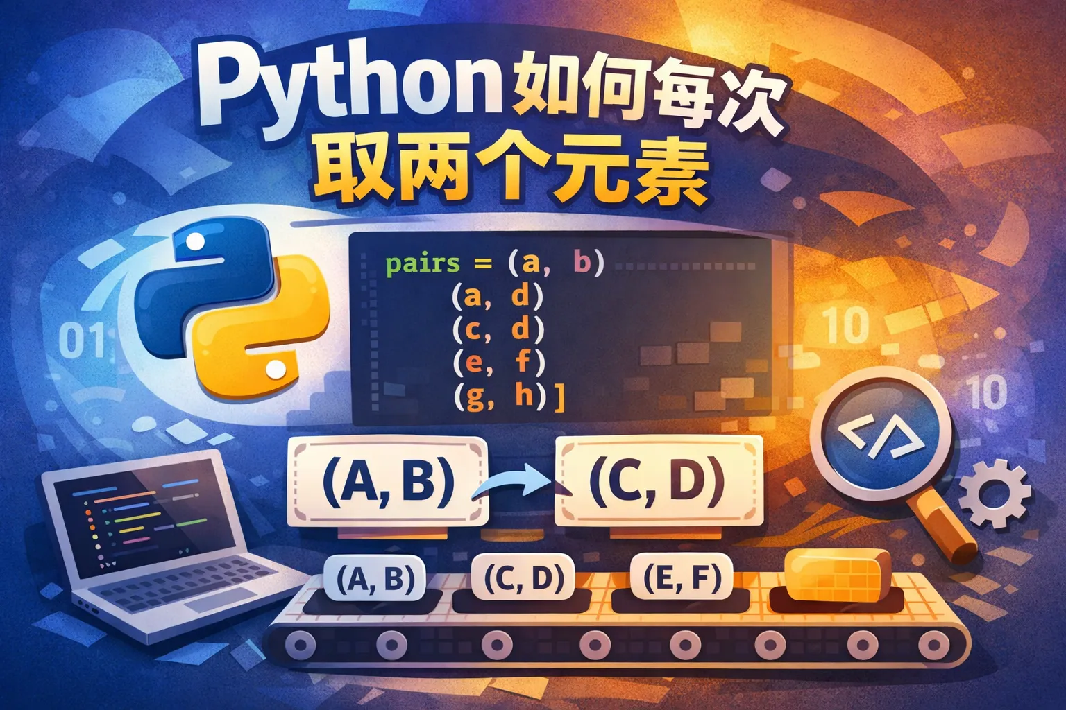 可以通过切片列表,例如 zip(lst, lst[1:]) 来生成连续的两元素对。另一种方法是用 itertools 的 pairwise 函数(Python 3.10及以后版本),它能直接返回迭代器,每次产出两个连续元素组成的元组,方便高效。
