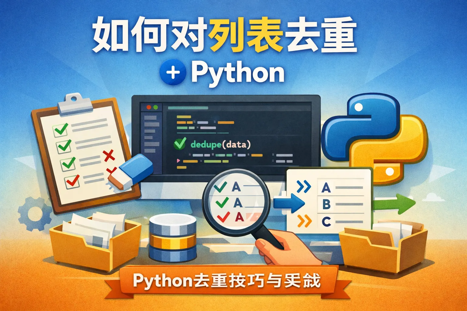 除了使用set数据结构来去重外,Python还可以通过列表推导式结合字典键的唯一性,使用collections.OrderedDict保持顺序去重,或者利用循环加条件判断手动去重。不同方法适用于不同场景,例如set去重最快但不保证顺序,OrderedDict可以保持原始顺序。