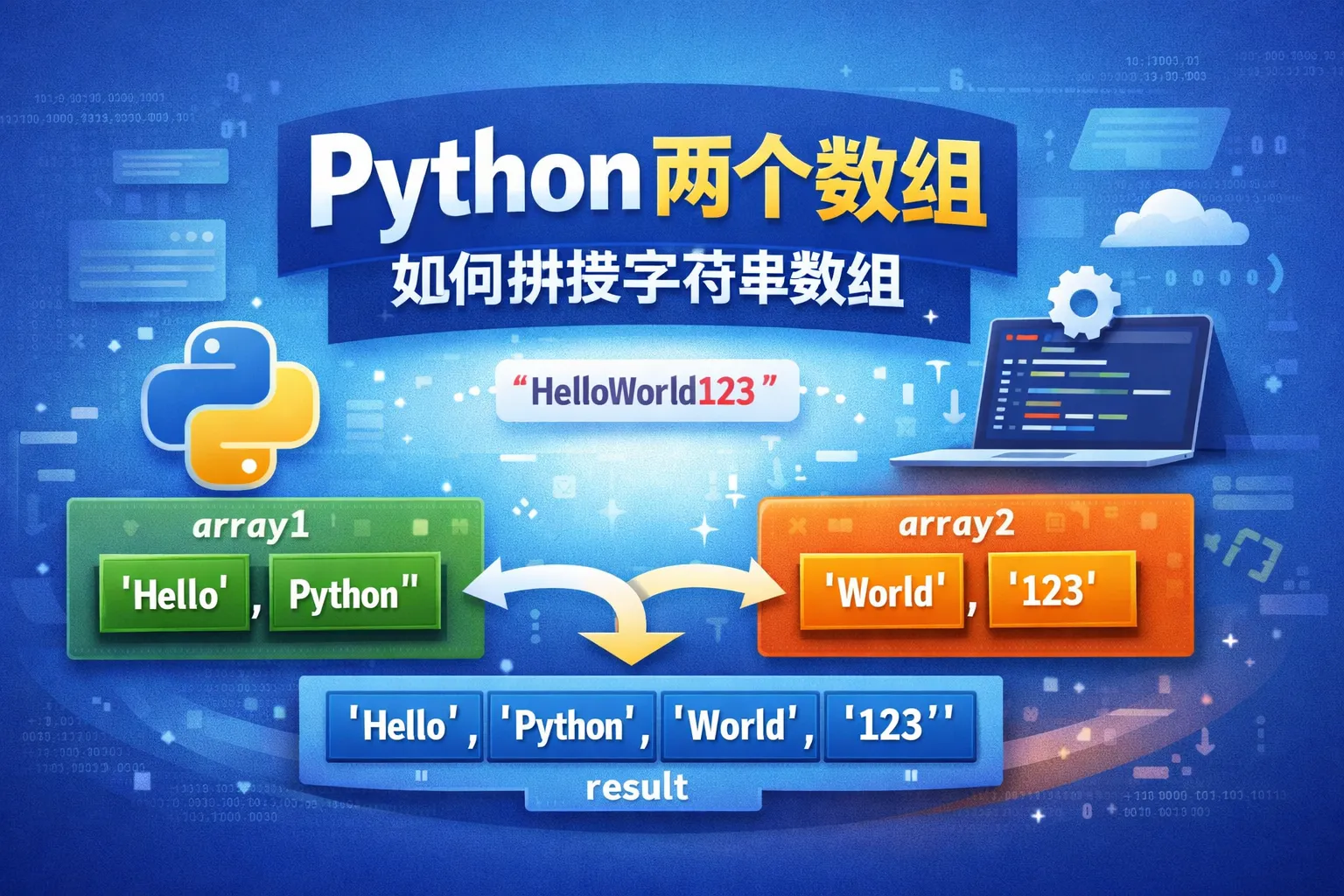 先将两个数组合并成一个列表,然后使用字符串的join方法对合并后的列表进行拼接,比如:''.join(list1 + list2),这会将所有元素拼接成一个连续的字符串。