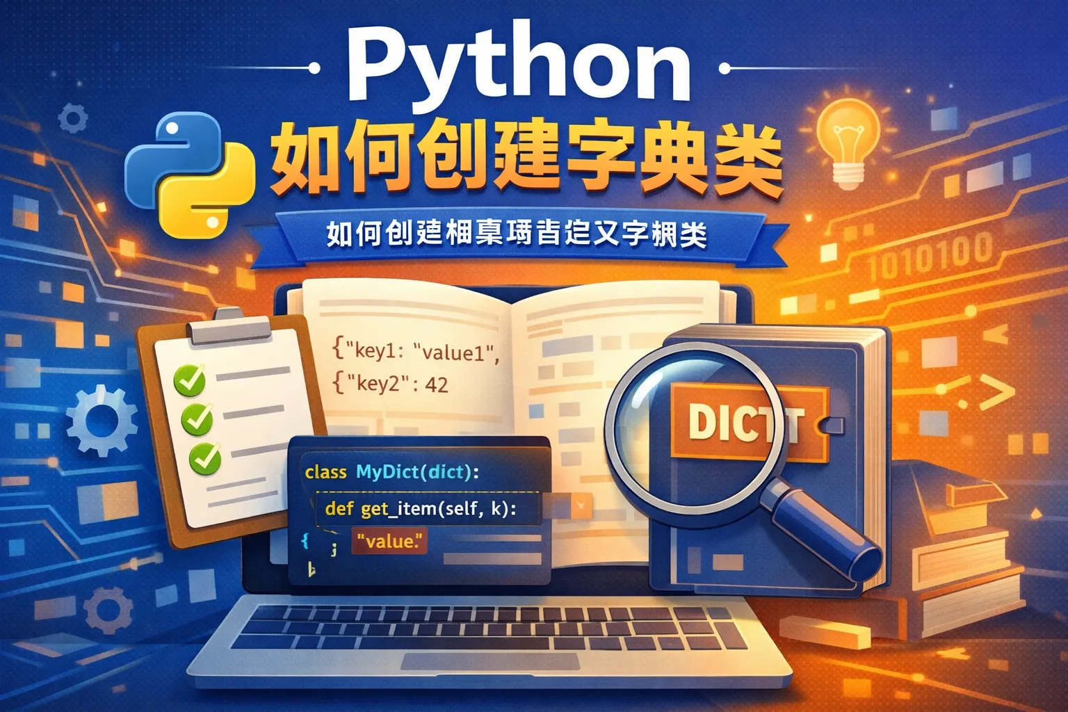 可以通过继承内置的dict类来创建自己的字典类。这样可以在保留dict所有默认功能的基础上,添加自定义方法或覆盖现有方法,以实现特殊的行为。例如,重写__setitem__方法用于限制键的类型或增加日志功能。