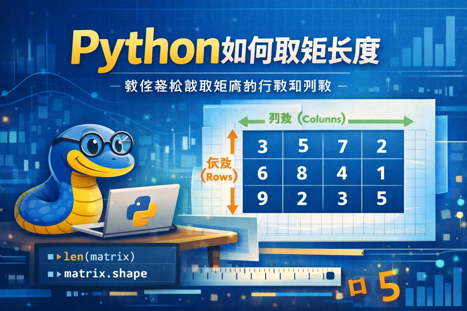 加载NumPy库后,可以使用matrix.shape属性来快速获取矩阵的行数和列数,返回值是一个元组,第一项代表行数,第二项代表列数。这是处理矩阵时非常方便的方式。