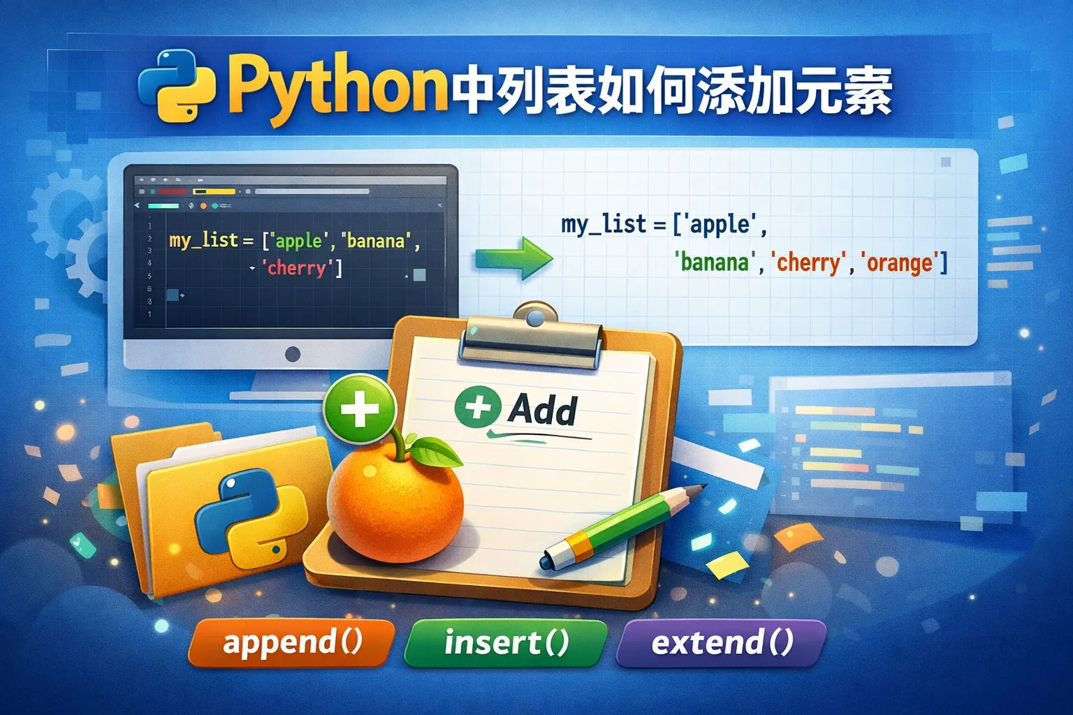 Python提供多种方式向列表中添加元素,包括使用append()将元素添加到末尾,使用insert()在指定位置插入元素,以及使用extend()将一个可迭代对象的所有元素添加到列表中。选择哪种方法取决于具体需求。