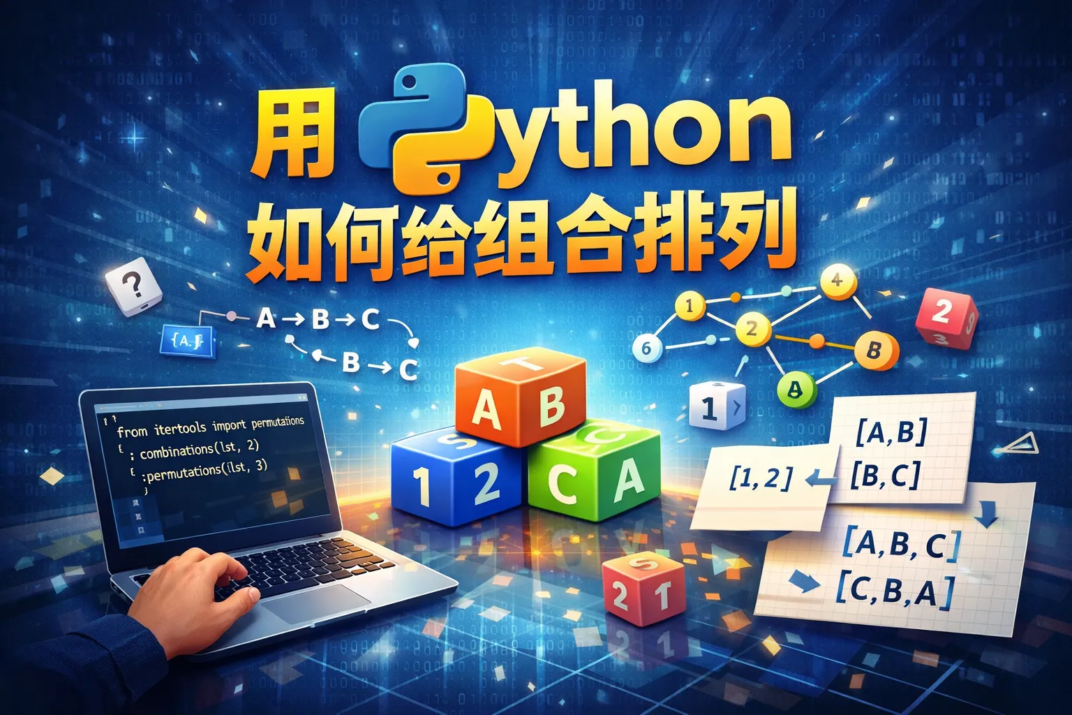 itertools模块里的permutations函数能生成全部排列。导入itertools后,调用permutations(可迭代对象, 排列长度)即可。通过遍历结果,可以访问每个排列。
