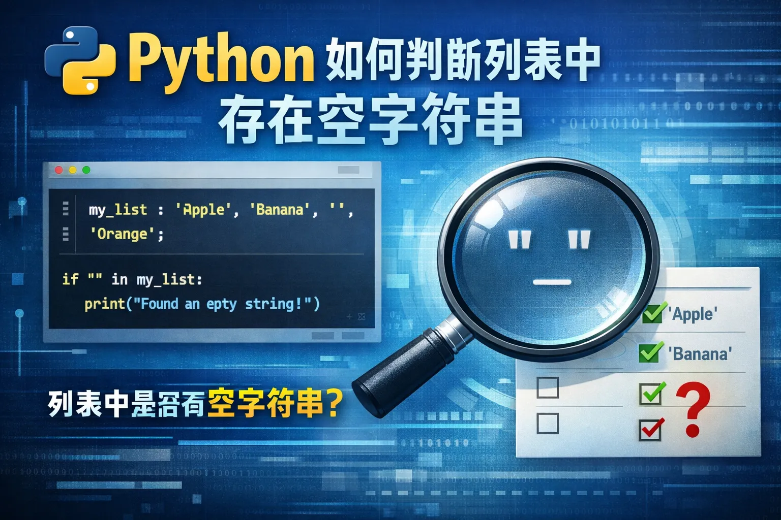 你可以通过表达式 '' in your_list 来判断列表中是否存在空字符串。若返回True,则表明列表中至少有一个空字符串。