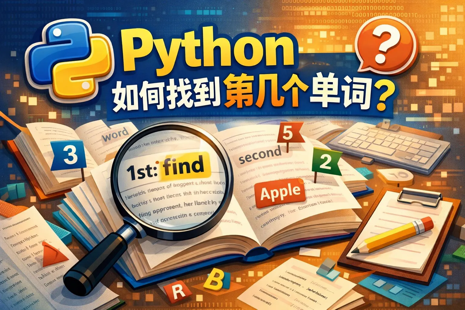 利用字符串的 split() 方法,把文本转换成单词列表,然后通过索引获取第几个单词。例如:words = text.split(); fifth_word = words[4],这样就能得到第5个单词。