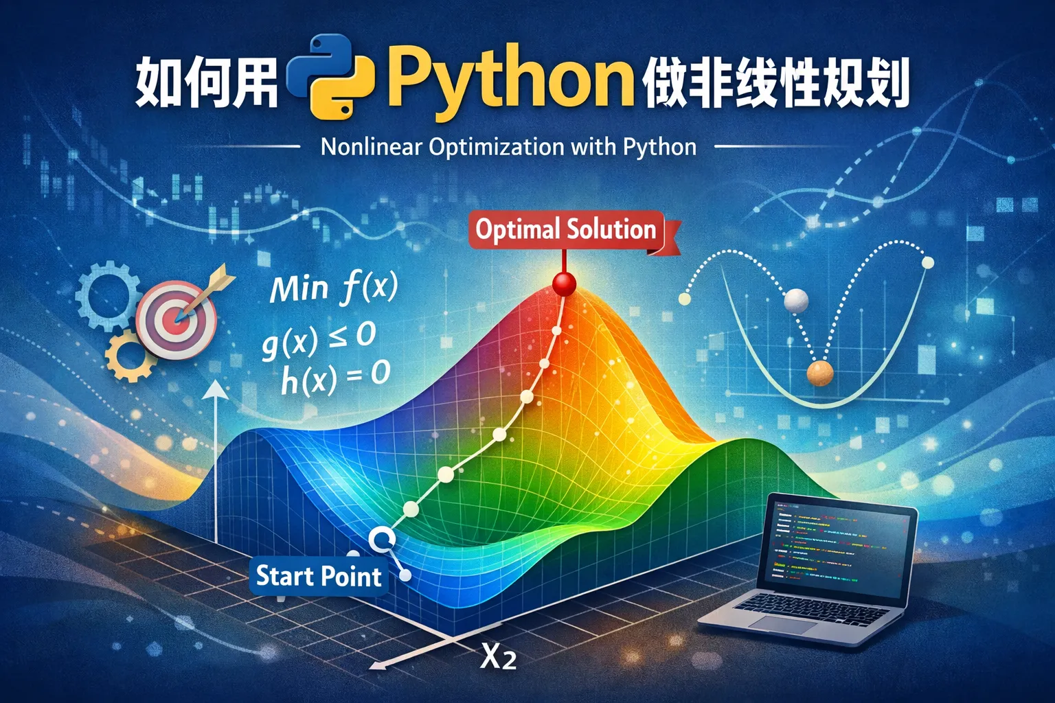 在Python中构建非线性规划时,一般将目标函数定义为一个接受变量向量并返回数值的函数。约束条件可以用函数表示,不等式约束会返回大于等于零或不等于零的函数值。以SciPy为例,可以通过定义目标函数和使用constraint字典(包含type和fun键)设置约束。在Pyomo或CVXPY中,则使用符号表达式定义变量、目标和约束,结构更清晰。