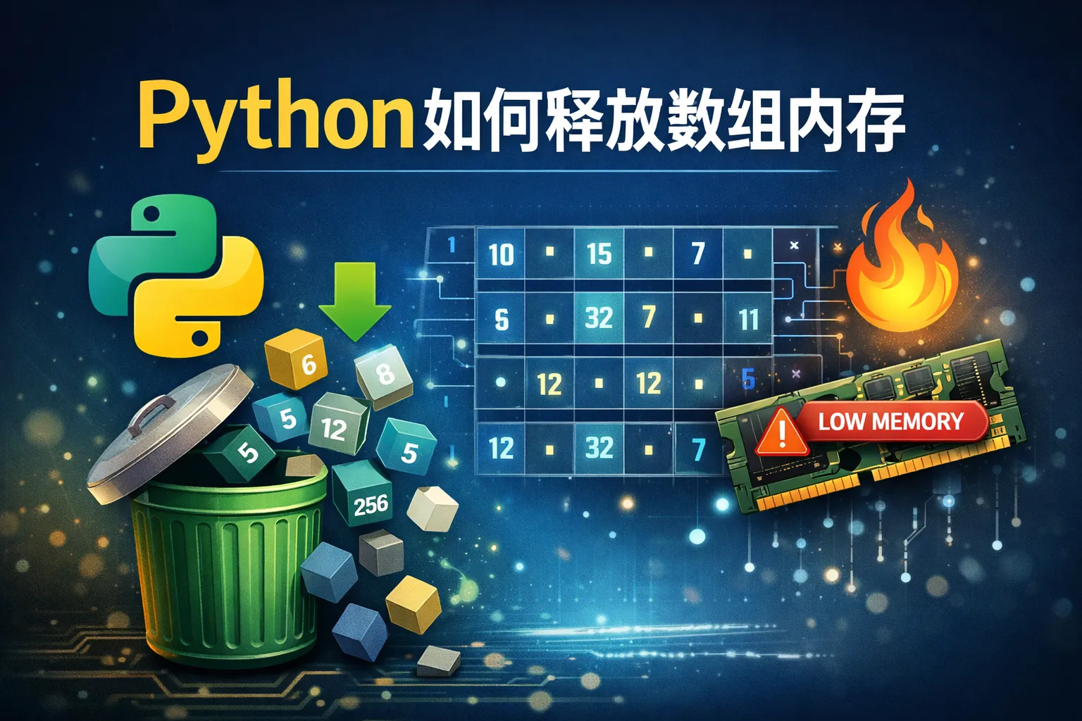 Python的垃圾回收机制会自动释放不再使用的对象内存,包括数组。如果想显式释放数组,可以删除数组变量的引用,使用del语句,或将其赋值为None,促使垃圾回收器回收该内存。对于大型数组,使用numpy库时也可以调用numpy的内存管理函数来帮助内存释放。