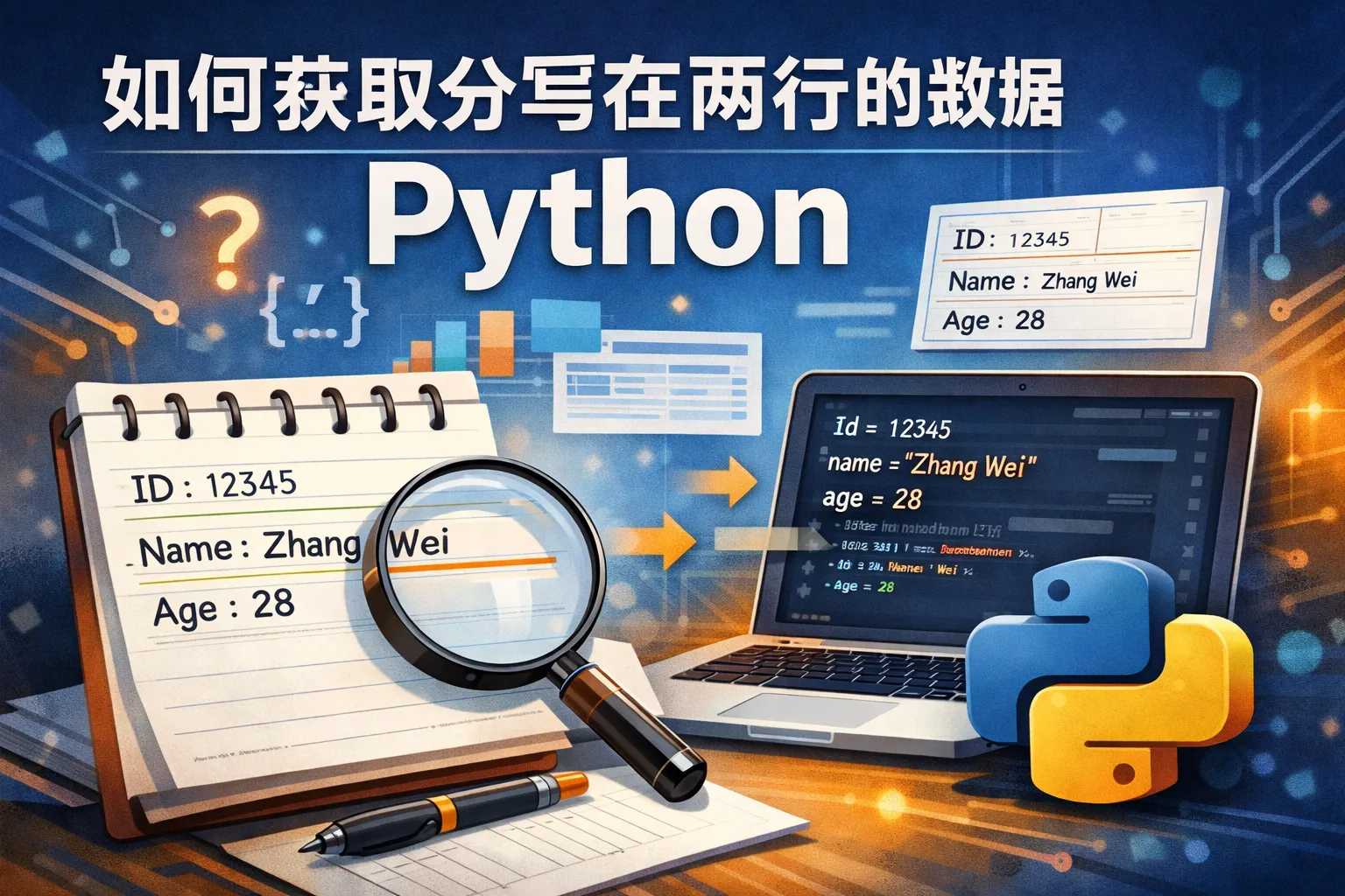 如何获取分写在两行的数据python