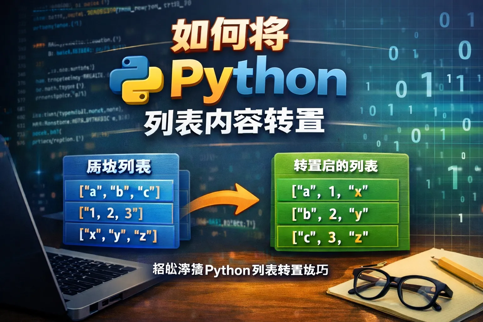 可以使用Python内置的zip函数结合列表解析来快速实现列表转置。例如,假设有一个二维列表matrix,可以通过 zip(*matrix) 将每一列打包成元组,再转换为列表形式: