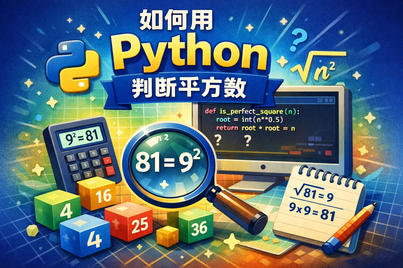 判断平方数在Python中是否需要导入额外模块?