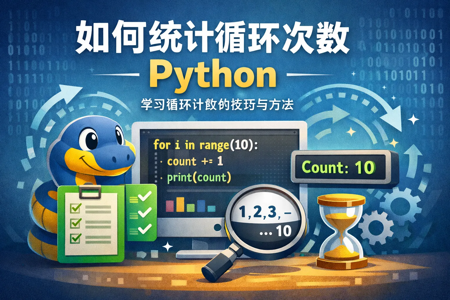 在Python中,一般使用计数器变量来统计循环次数。可以在循环开始前初始化一个变量为0,然后在每次循环执行时将其加1。这样,循环结束后,计数器变量的值即为循环执行的总次数。